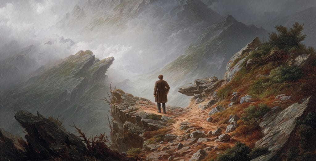 Let us begin with the first of these trails — the sinner’s road. It is one of comfort and ease, wherein there are many forks, loops, and byroads of vice and pleasure. Though the sinner is not at all equipped for a journey, he has no need for peripheral gear or preparation since his journey is over smooth and level track, lined with fruit in the hedgerows and lush, flowing streams of fancies, some of goodness and beauty, others of lust and vice. And it seems as though no matter which course he chooses, the path is clear and the direction is simply that which suits his impulses, for good or ill. He plucks and eats of succulent fruits and chases down all manner of paths. He does not care where he goes so long as the going is easy and the direction is of his own making. Whatever number of decisions and distractions there are along the way there are equal paths that shoot out into an infinite canopy of branches and self-oriented quests. No road is a wrong turn and he happily skips along, unaware of the final destination.